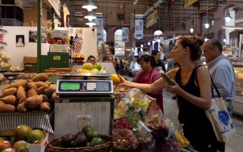Pessoas fazem compras em mercado em Washington ...