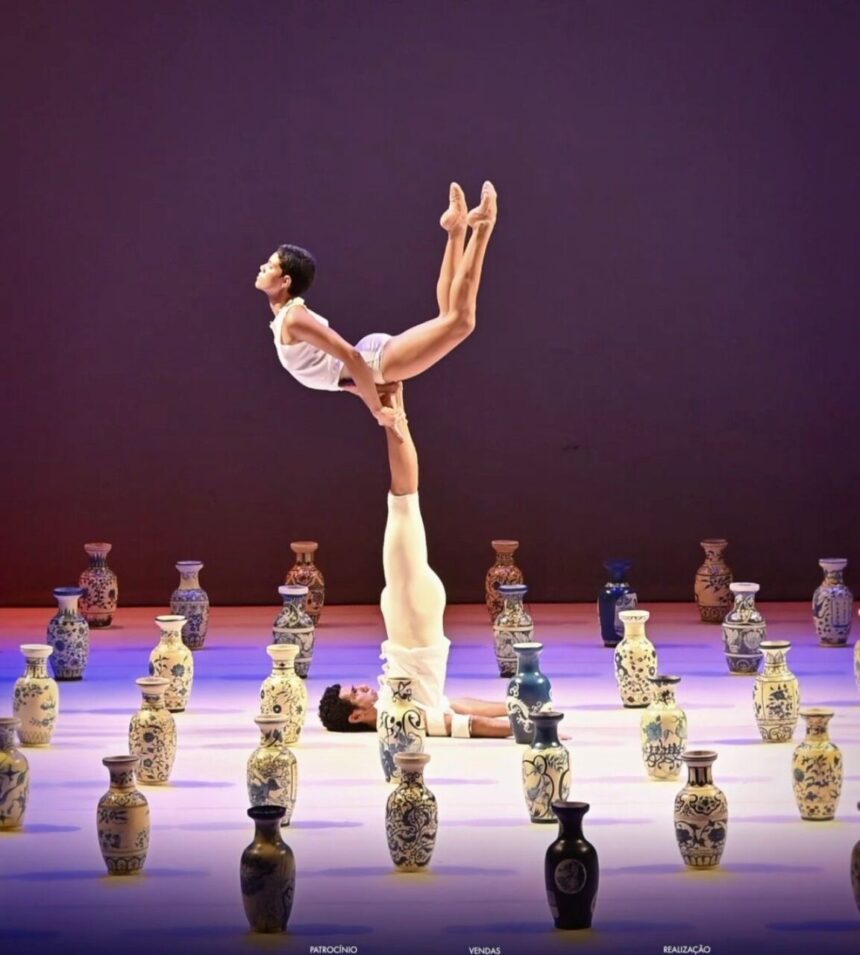 Em seguida, “As Meninas” de “4×4” (2002) proporcionam um momento icônico, dançando ao som de uma sonata de Mozart, que é tocada ao vivo. A sequência contempla a dança “Vasos”, que encerra o primeiro ato do espetáculo. Após o intervalo, o segundo ato apresenta duas cenas do espetáculo “Rota” (1997), onde “Gravidade” propõe uma nova condição física enquanto busca o equilíbrio, e a “Roda” sobre a ocupação do espaço, que também traz uma referência lúdica ao fluxo contínuo do nosso planeta.