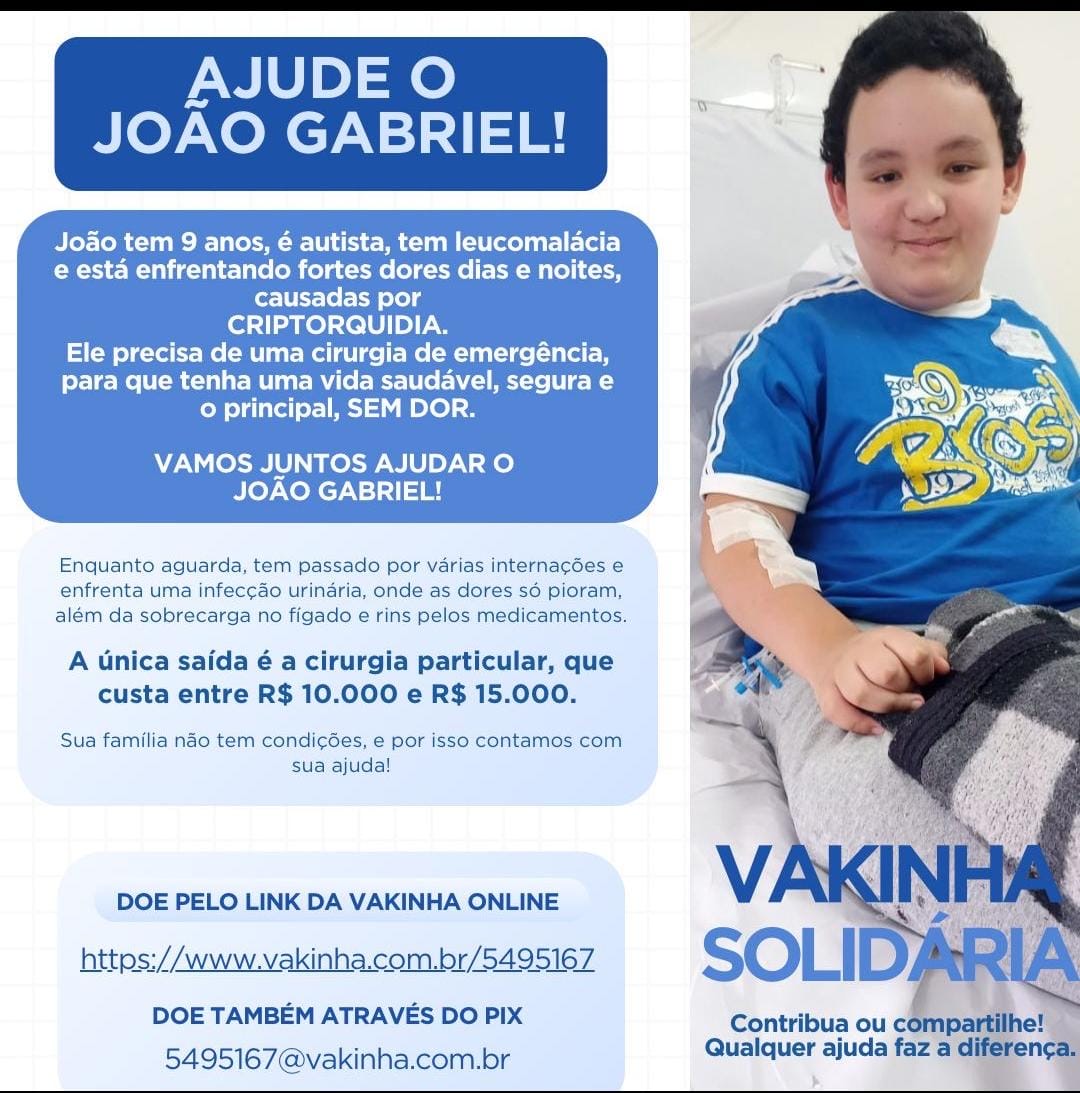 A campanha destaca a urgência do procedimento para garantir uma vida saudável e sem dor para João Gabriel. Cada contribuição pode fazer a diferença nessa corrida contra o tempo.