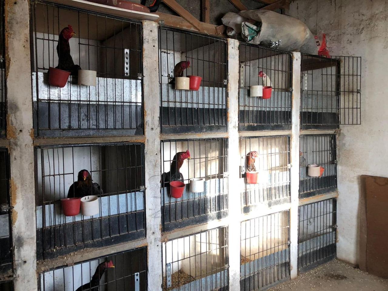 Com os mandados, o delegado e os investigadores foram até o local e encontraram onze galos de briga, anabolizantes para os animais, agrotóxicos, animais silvestres e uma arena, onde eram realizadas as brigas de galos.